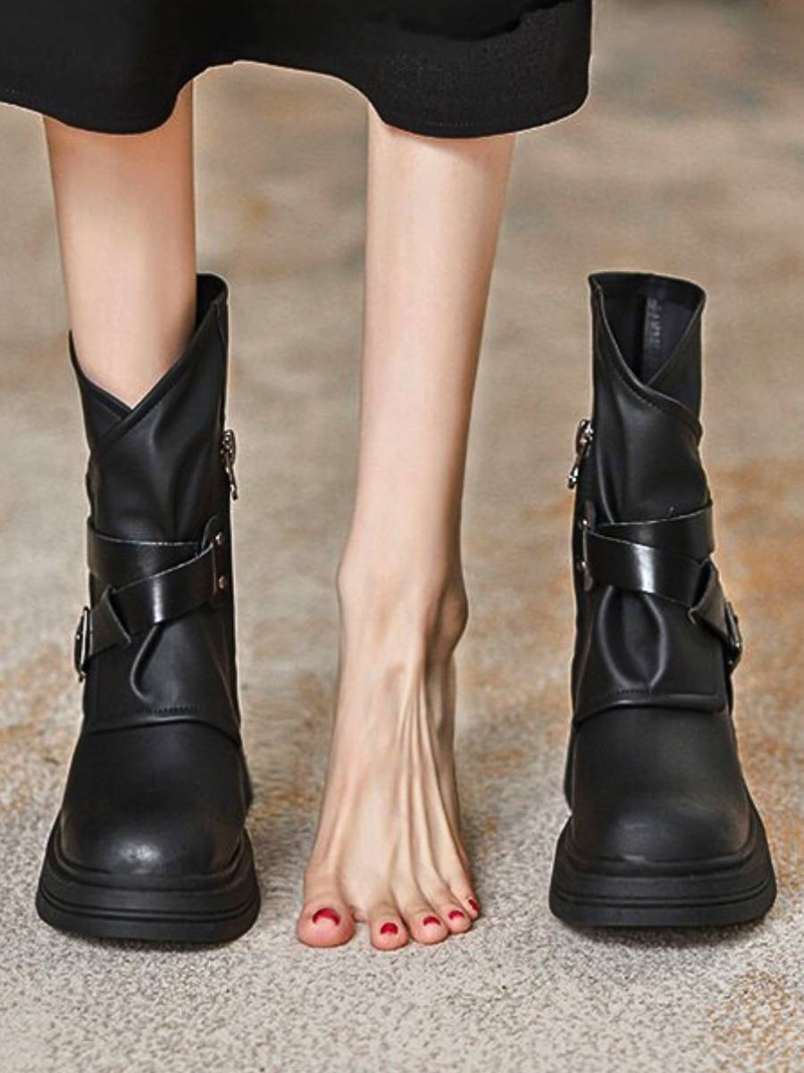 Side Zipper Thick Sole Height-Enhancing Martin Boots